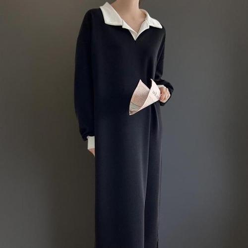 [신상오픈런]|KSO580F|여성 배색 카라넥 가을 임부복 등원용 스판 롱 드레스_23230583_597559