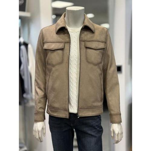 [바쏘옴므]basso 세이브존01 베이지 비건 레더 스웨이드 스트레치 스판 카라 점퍼 BS-A5-UA21A