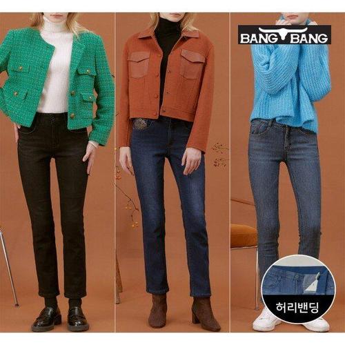 [뱅뱅][뱅뱅] 여성 벨로아 본딩 스판 데님 3종세트