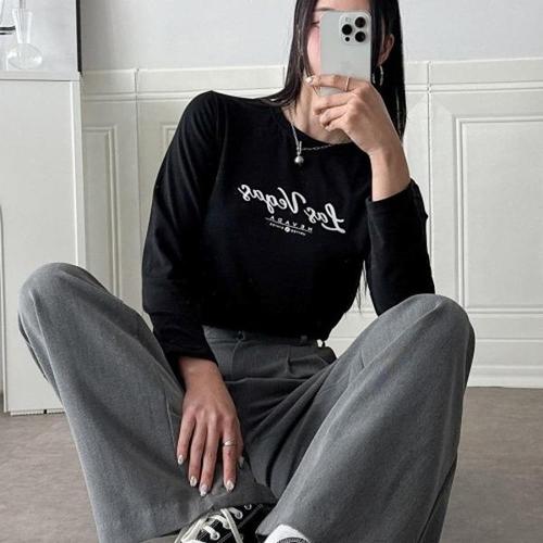 [신상오픈런]|KST8992|봄쭉티 라운드넥 스판 자켓이너 부들 필기체 긴팔티셔츠_19833999_597559