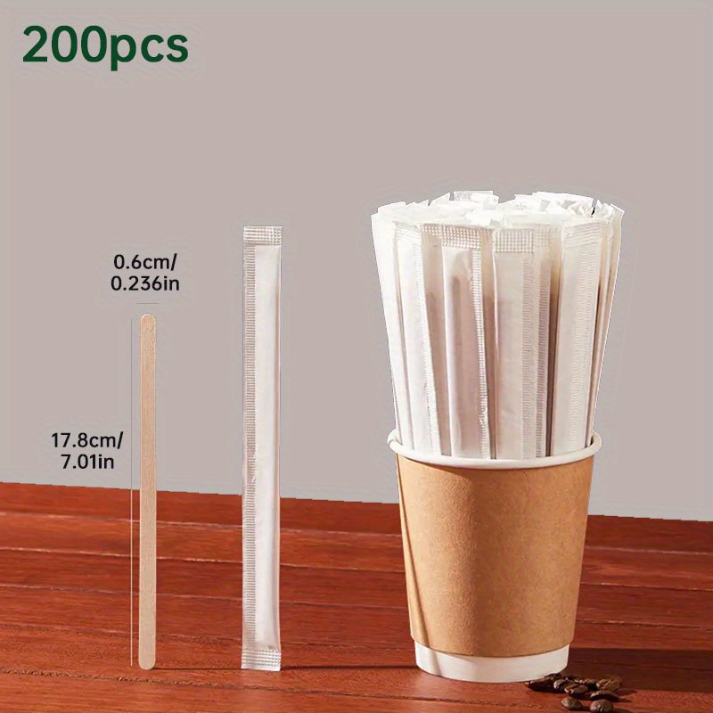 TEMU 100개/200개 나무 커피 휘슬 17.8cm/7.01인치 긴 손잡이 일회용 음료 섞기, 뜨거운 및 차가운 음료에 적합 - 가정, 가정용 상업 사용, 사무실, 레스토랑, 친구에게 19개의 선물에 적합한 완벽한 선택