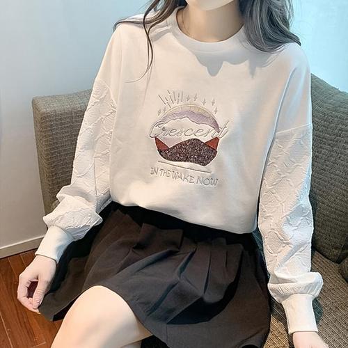 [퀸이즈] 피니 스팽글 포인트 소매 디테일 맨투맨 티셔츠