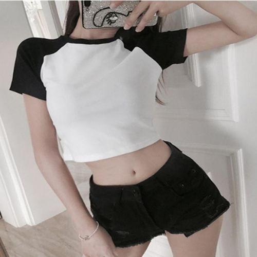 [셀러허브_여성트랜드패션]ONM 배색 나그랑 코튼 크롭 반팔 여자 티셔츠 댄스 연습복