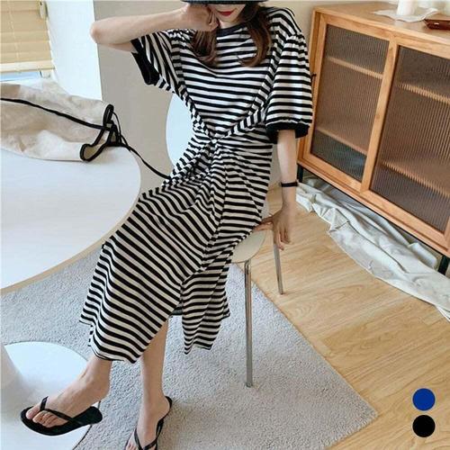 [셀럽하우스]캐주얼 BKBP2506 줄무늬 스프라이트 반팔 롱 원피스