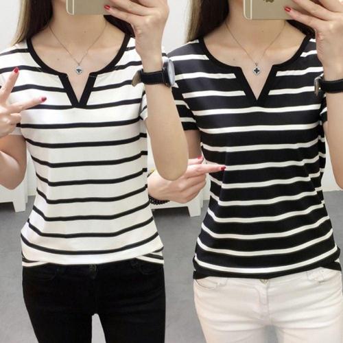반팔티 여성 스트라이프티 스트라이프 티셔츠 (3oDMl)