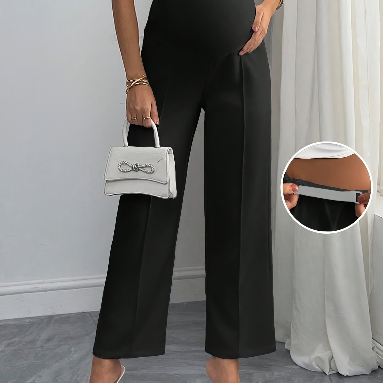 TEMU 임산부용 레저/오피스 플레어 팬츠, 조절 가능한 탄성 하이웨이스트 풀 길이 트라우저