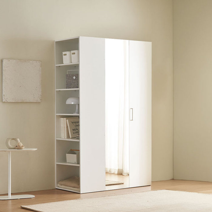 장인가구 [비밀특가] 장인가구 노드 E0 폴딩도어 슬라이딩 거울 옷장 측면오픈장 C세트 1200 (2단 행거형 거울 800+측면 오픈형 틈새 옷장)