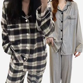 TEMU [남성/여성] 커플 스타일 파자마, 남성 또는 여성용, 긴팔 파자마 라운지웨어, 버튼업 상의와 하의, 상의 1개와 하의 1개, 데이