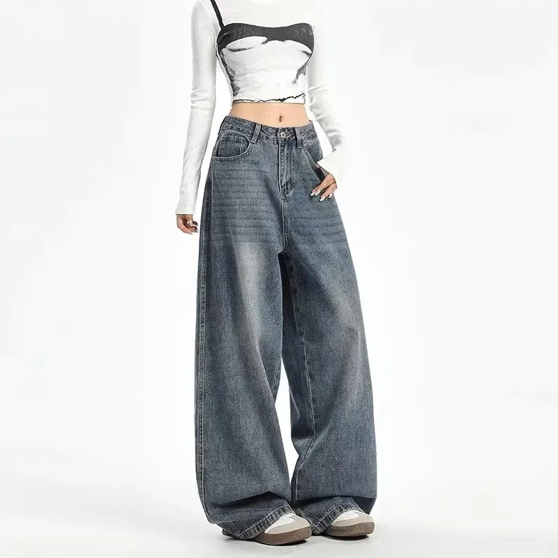 레트로 워시드 레이지 와이드 레그 진 여성용 신상 2025 하이웨이스트 슬리밍 플로어 길이 루즈 스트레이트 컷 바지 캐주얼 스타일