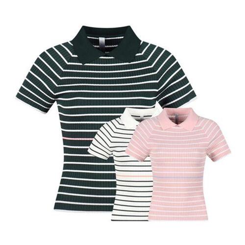 [보스케]MARIO 여성 여름 골프 스트라이프 슬림핏 반팔 니트 BQ25023288
