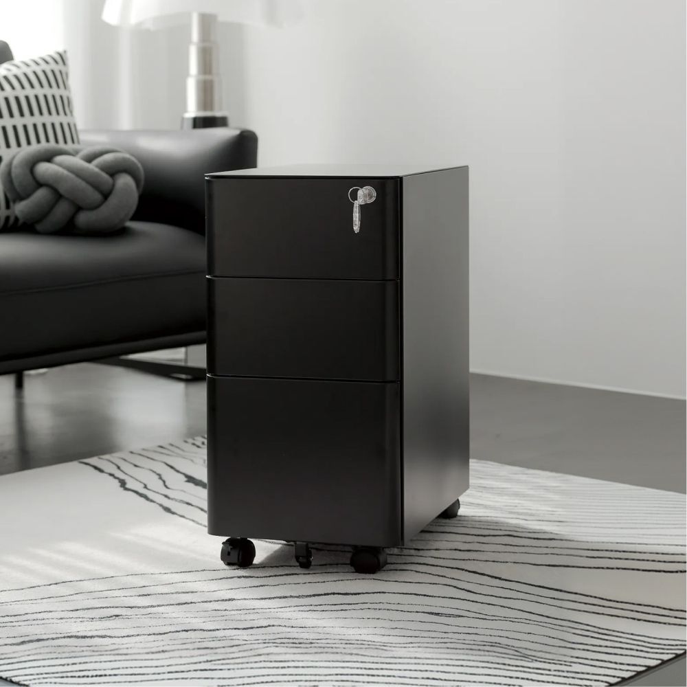 큐브 3단 프리미엄 스틸 슬림 캐비넷 블랙 (W300)