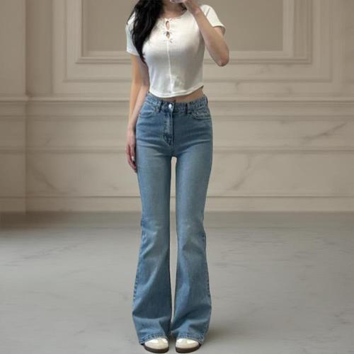 [옷자락]여성 여름 데님 스판 슬림핏 연청 부츠컷 워싱 청바지