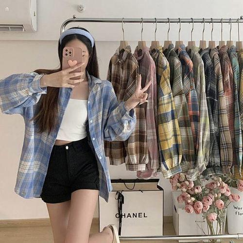 [모노무드]LMO 우먼 이쁜 타탄 무늬 포인트컬러 데일리 긴소매 데일리셔츠시그니처