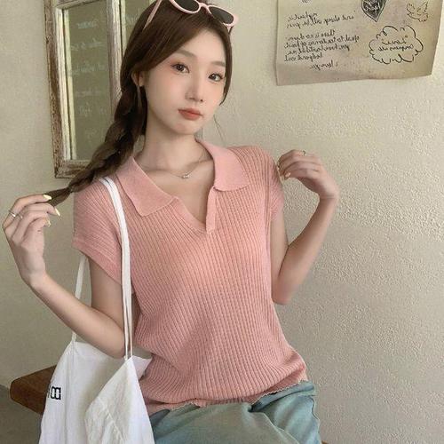 [모노무드]LMO 스탠다드네크라인 포인트컬러 여성용 크롭핏 블라우스 시그니처 탑