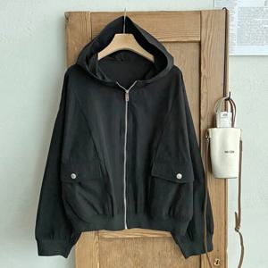 샵앤) 여성 밑단시보리 간절기 나그랑 후드 집업 점퍼 BONG-WJP-4754-블랙