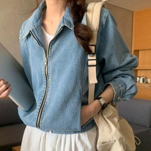 여자 데님 숏 시보리 집업 점퍼 아우터 자켓 밑단 WFLQ8BW