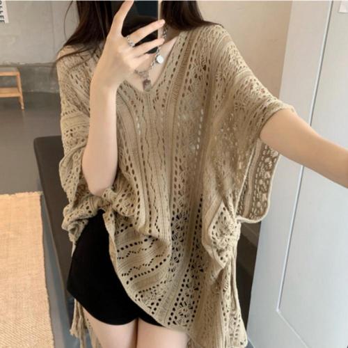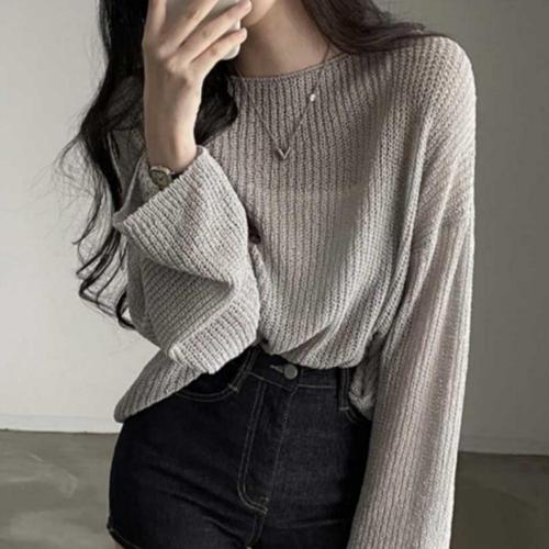펀칭 루즈핏 레이어드 시스루 여성 여름 롱 브이넥 니트 WFLQNNX