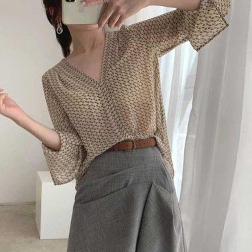 [엄지척]시스루 쉬폰 브이넥 데이트룩 치마 코디_19660214_667501