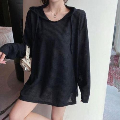 [신상오픈런]여성 세미시스루 와플 후드티 오버핏 스트링 디자인