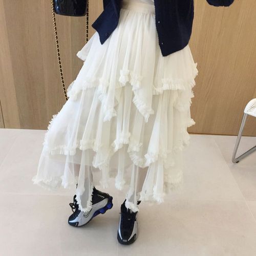 [옷자락]여자 프릴 레이스 시스루 레이어드 발레코어 롱스커트