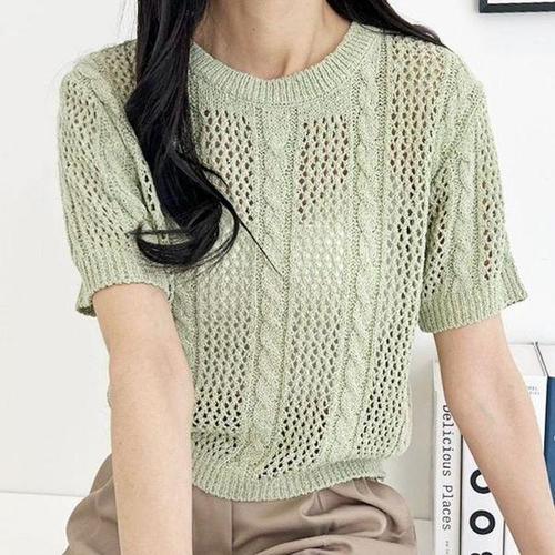 [셀러허브_여성트랜드패션]ONM 시스루 여성 반팔 니트 여름 여자 반팔티 니트티