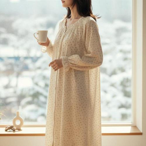 [옷자락] 여자 홈웨어 봄 원피스 소매밴딩 시스루 잠옷