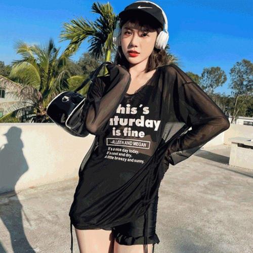 여자 시스루 오프숄더 커버업 수영복 세트