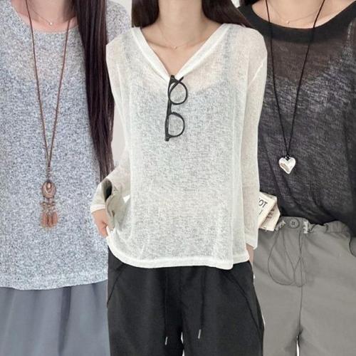 [엄지척]여성 3컬러 얇고 통기성 커버업 여름 시스루 긴팔티_19613860_667501