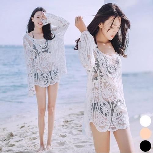 [엄지척]나시 수영복 커버업 여름 여성 시스루 긴팔 티셔츠_19612868_667501