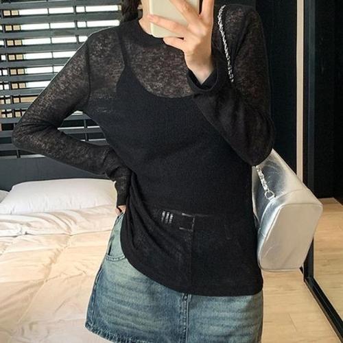 [에이치플러스몰]커버업 시스루 긴팔티 깔끔 여성 티셔츠