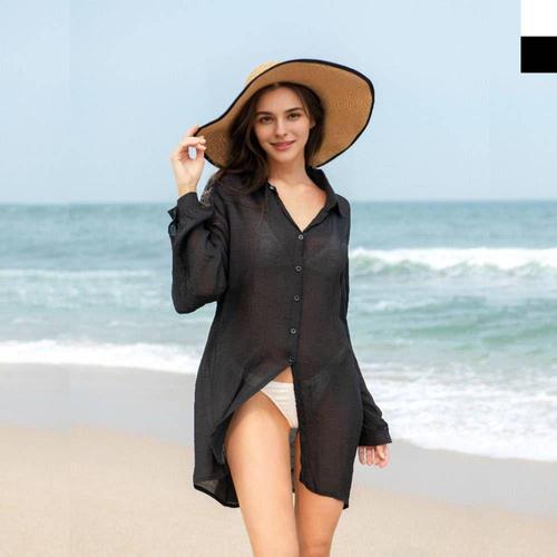 [셀럽하우스]여자 VBGL2564 여름 커버업 비치웨어 시스루 긴팔 롱셔츠
