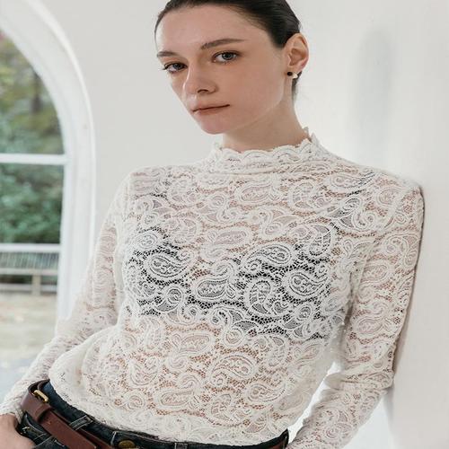 [막스까르띠지오]레이어링 시스루 반하이넥 레이스 티셔츠