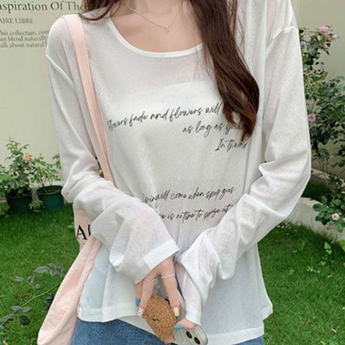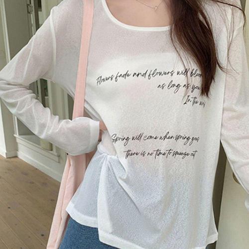여성 레터링 시스루 긴팔 티셔츠 트렌디 캐주얼룩 WFKMHGO