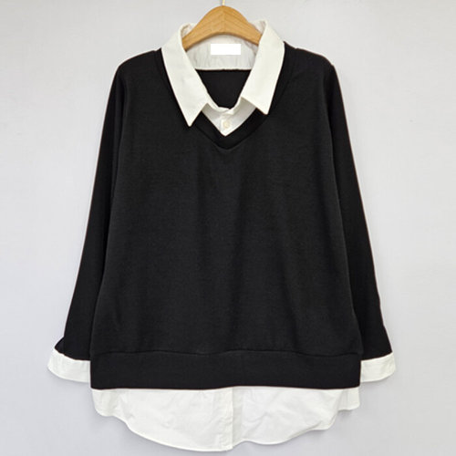 아이우먼 시스터배색셔츠루즈핏티 OLT779M502 빅사이즈