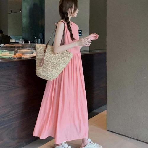 여성 루즈핏 백리스 끈나시 에스닉 원피스 bdm7+7ydx