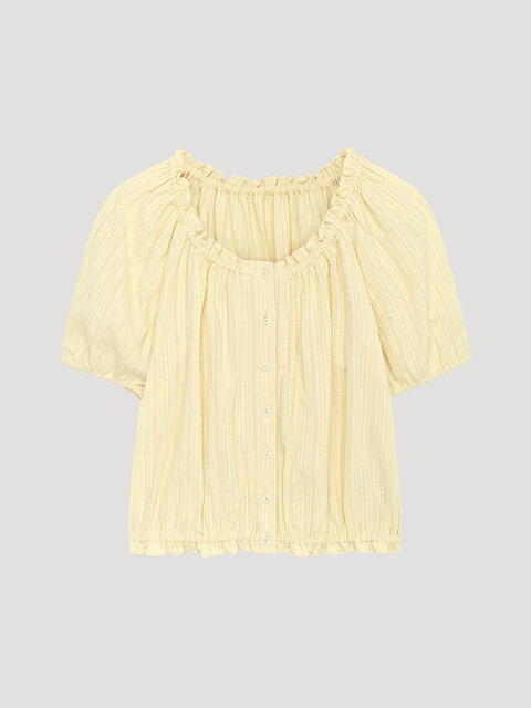 [시스티나] 레이스 카라 퍼프 블라우스_라이트옐로우