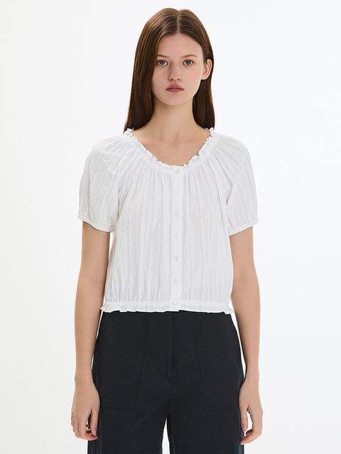 [시스티나] 코튼 셔링 블라우스_오프화이트