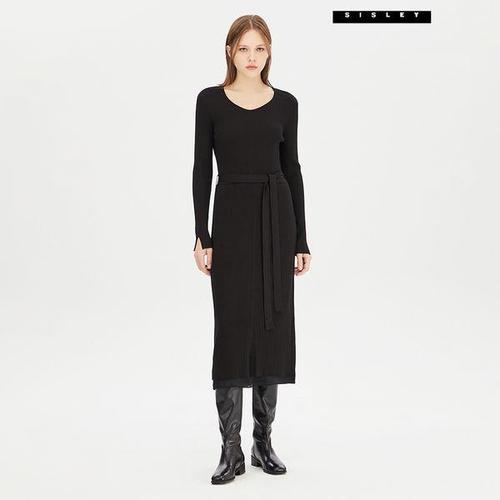 [시슬리]포튼 니트 배색 원피스 SAOP33361_BK
