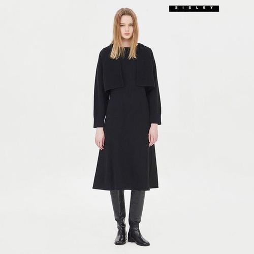 [시슬리]훌라인 울 가디건 니트 원피스 세트 SAKO35361_BK