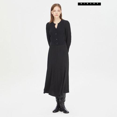 [시슬리]체이스 니트탑 주름 원피스 SAOP02241_BK