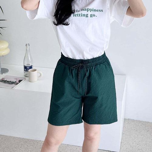 [셀럽하우스]여자 SDVH9855 허리밴딩 홈웨어 데일리 4부 시어서커 반바지