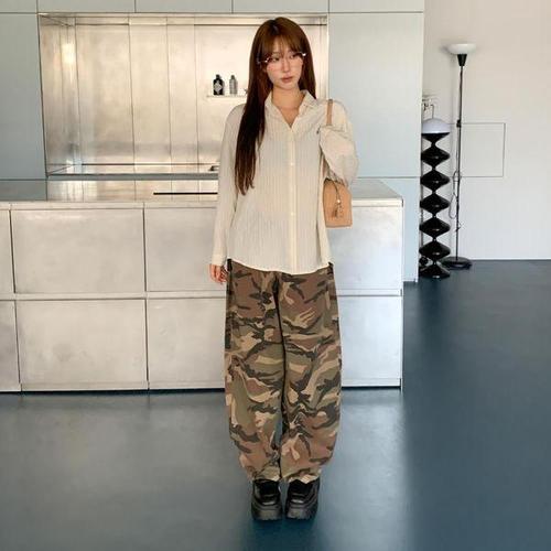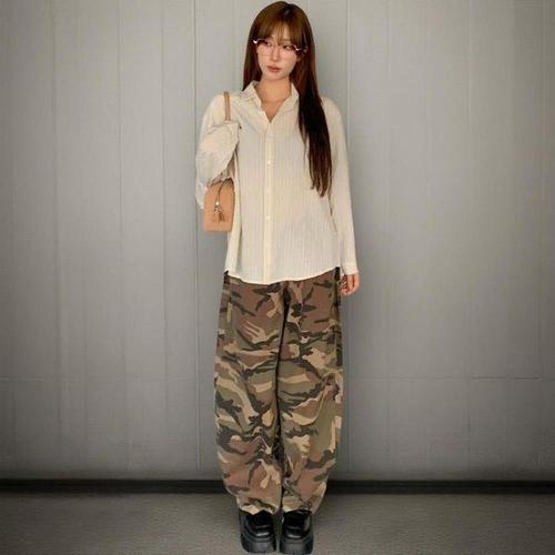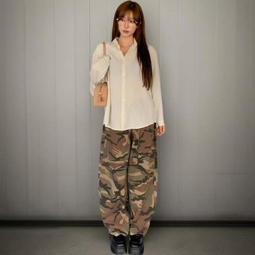 [다잇템]여성 박시핏 그런지 단가라 시어서커 셔츠