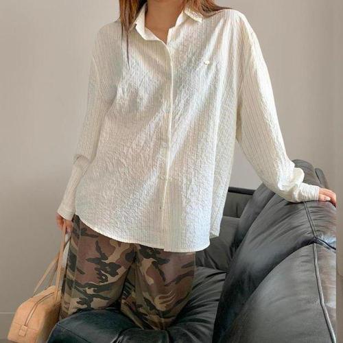 [신상오픈런]여성용 루즈핏 시어서커 스트라이프 셔츠 블라우스