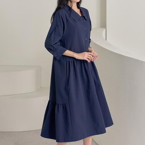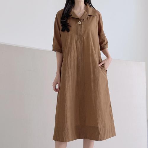 [로즈미] [55~77] 아넌 7부 시어서커 버튼 원피스
