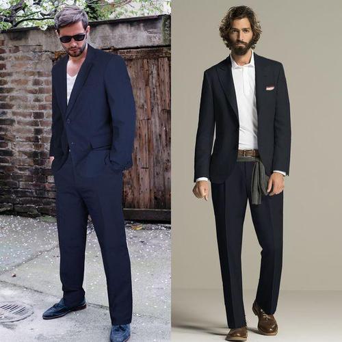 [트루젠]남자 신축성 좋은 스판 여름 시어서커 네이비 캐주얼 세미 정장 셋업 양복 세트 28-39인치_JK