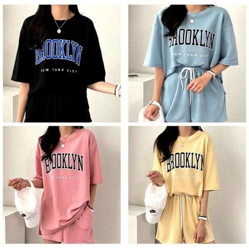 [엄지척]여름 시원한 편한 여성 루즈핏 영문 상하의 반팔세트_19614728_667501