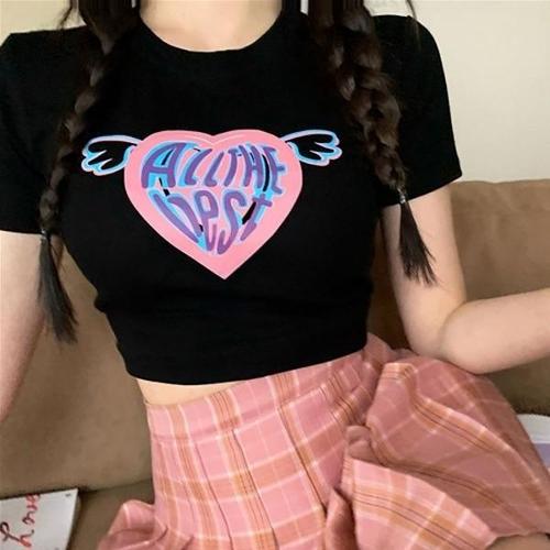 [엄지척]여자 데일리 편한 시원한 여름 하트 날개 반팔 크롭티_19558114_667501