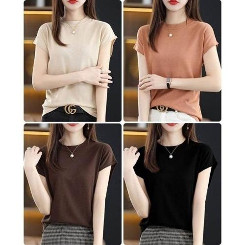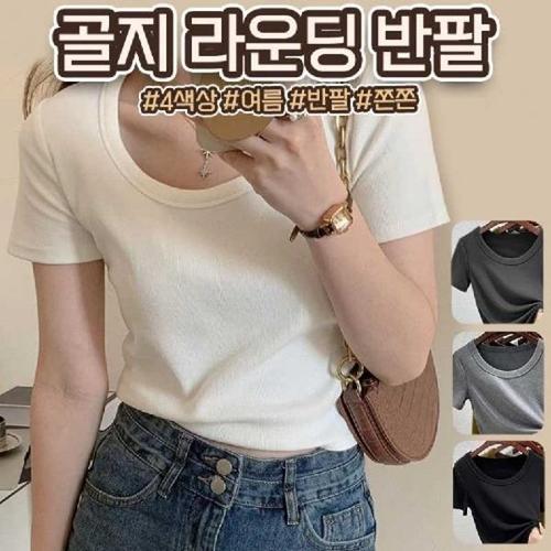 [엄지척]여름 시원한 편한 여성 반목 캡소매 반팔 니트 티셔츠_19614256_667501