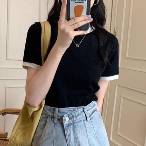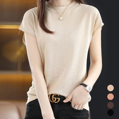 [엄지척]여자 라운드넥 시원한 소재 가벼운 여름 니트 티셔츠_19680059_667501