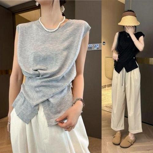 포인트 의류 여름 독특한 슬리브리스 시원한 탑 WFLQAV1
